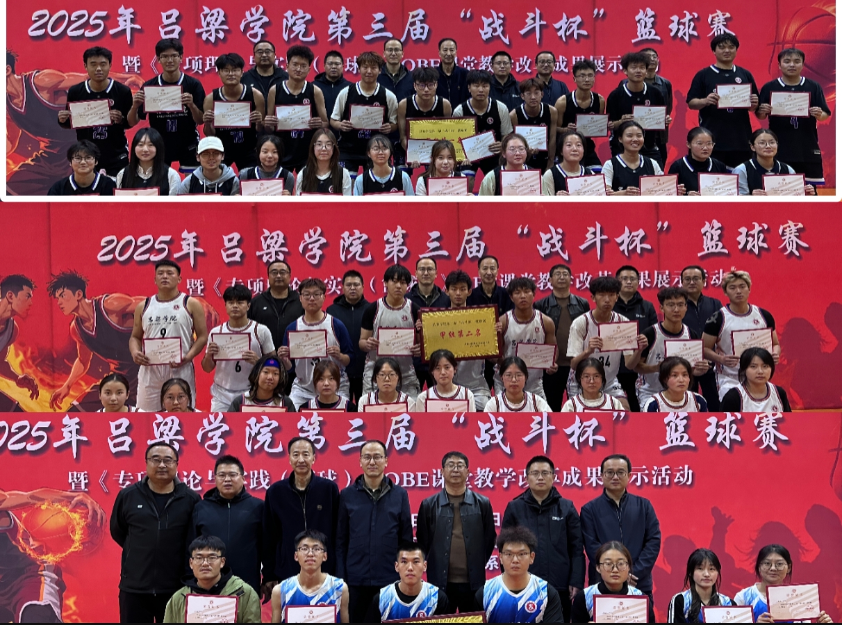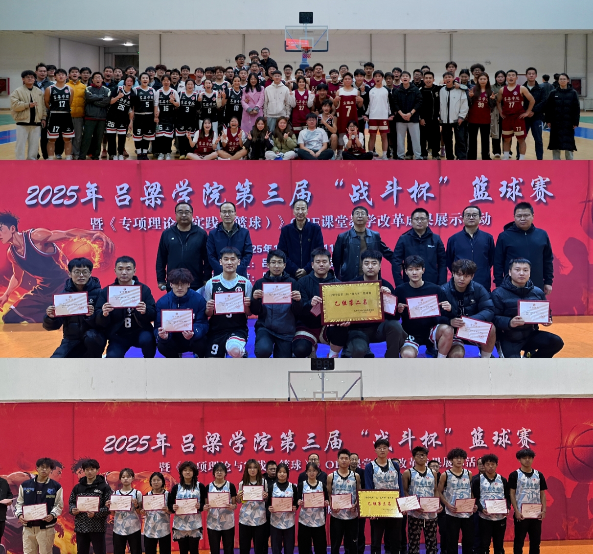 11月11日晚,吕梁学院第三届“战斗杯”篮球赛闭幕式顺利举行。建筑与土木工程系党总支书记王亮亮,资源与机械工程系副主任王晓蕾,体育与健康系书记高兴旺、主任赵永军、副书记赵燕、副主任李艳江、分团委书记李晓海等领导嘉宾出席闭幕式,为获奖队伍颁奖。