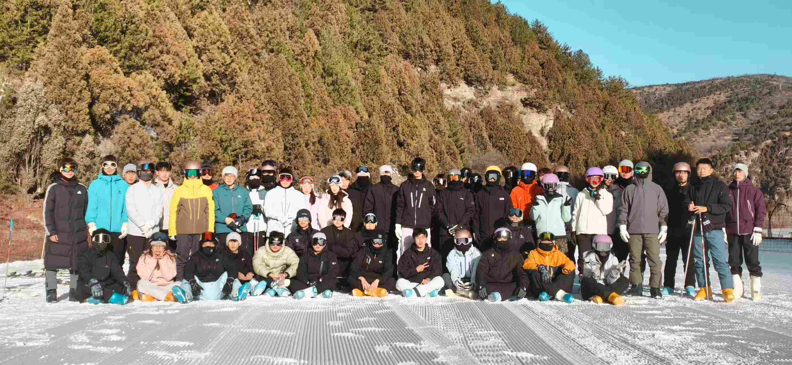 实训按专业方向分为两大模块:23级山地户外方向以攀冰为核心实训内容,12日至15日系统学习冰镐使用、冰坡行进等攀冰技术,16日至17日转场开展滑雪实践;24级涉水方向则分为两个滑雪班,在12日至17日的实训中以滑雪技能训练为主,穿插攀冰课程拓展户外能力。实训期间,三位带队老师结合场地特点,将理论知识融入实操教学,指导学生攻克冰雪环境下的技术难点,同时严格落实安全管理,保障实训顺利推进。石膏山景区专业的冰雪场地与安全设施,为技能实训提供了优质保障。通过本次实训,学生不仅熟练掌握了冰雪运动专项技能,更锤炼了户外应急处置与团队协作能力,为后续投身休闲体育行业积累了宝贵实践经验。