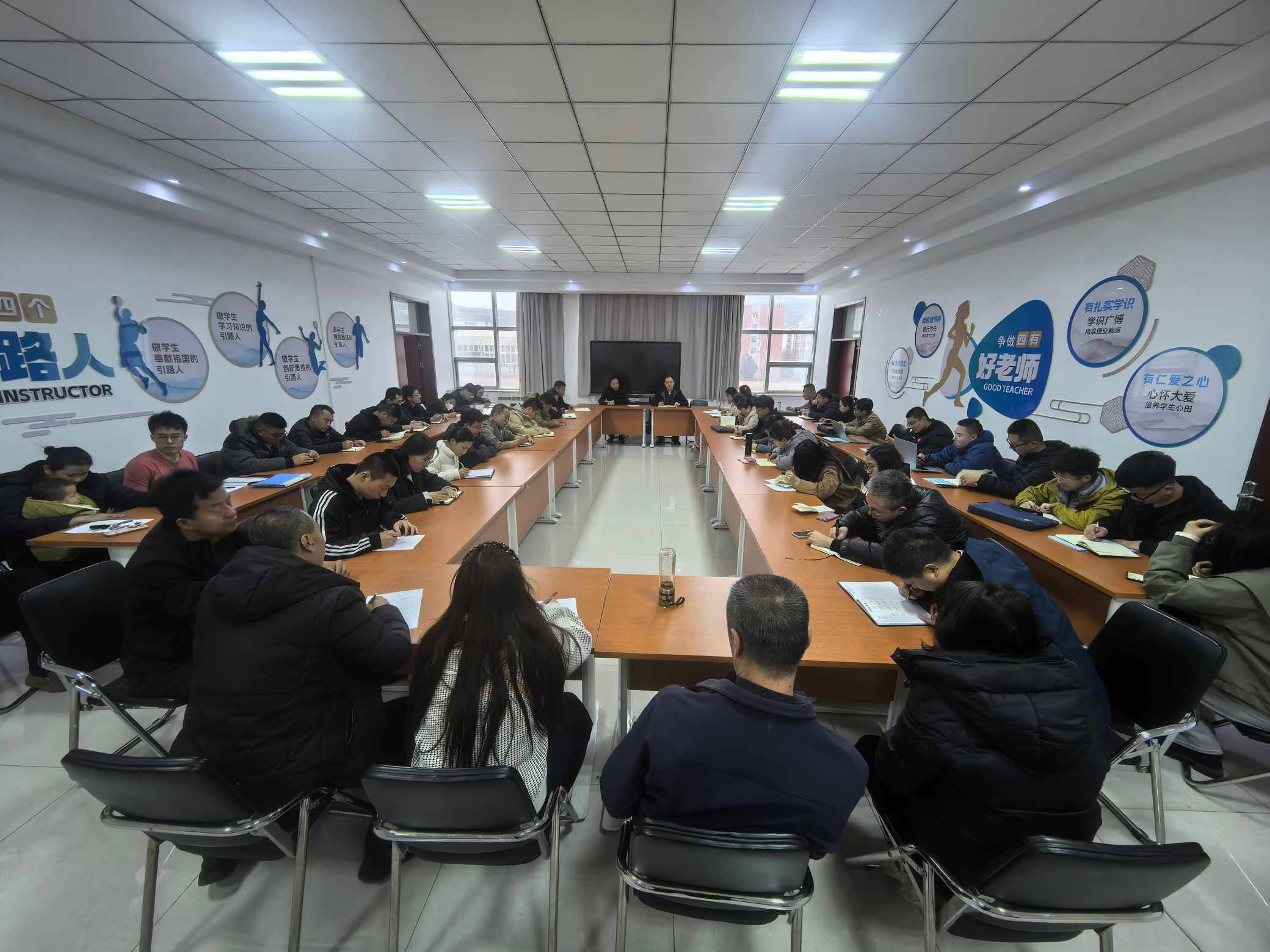 会上,高兴旺书记带领全体教师深入学习《新时代高校教师十项行为准则》,着重强调学术规范与师德师风建设,要求全体教师严守学术底线、恪守育人初心,按要求完成师德师风学习100学分,持续提升师德修养与职业素养,营造风清气正的育人环境。
